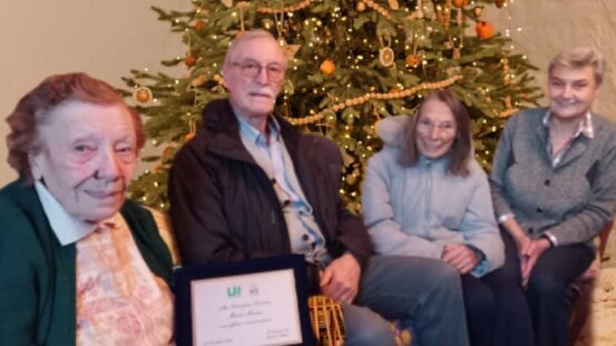 Consegna della targa di riconoscimento per i suoi 40 anni di dedizione a Unitre Chieri .Con Domenico Benente, Maria Teresa Bechis, Lalla Marzano e , dietro l'obiettivo, Donatella Bizzotto